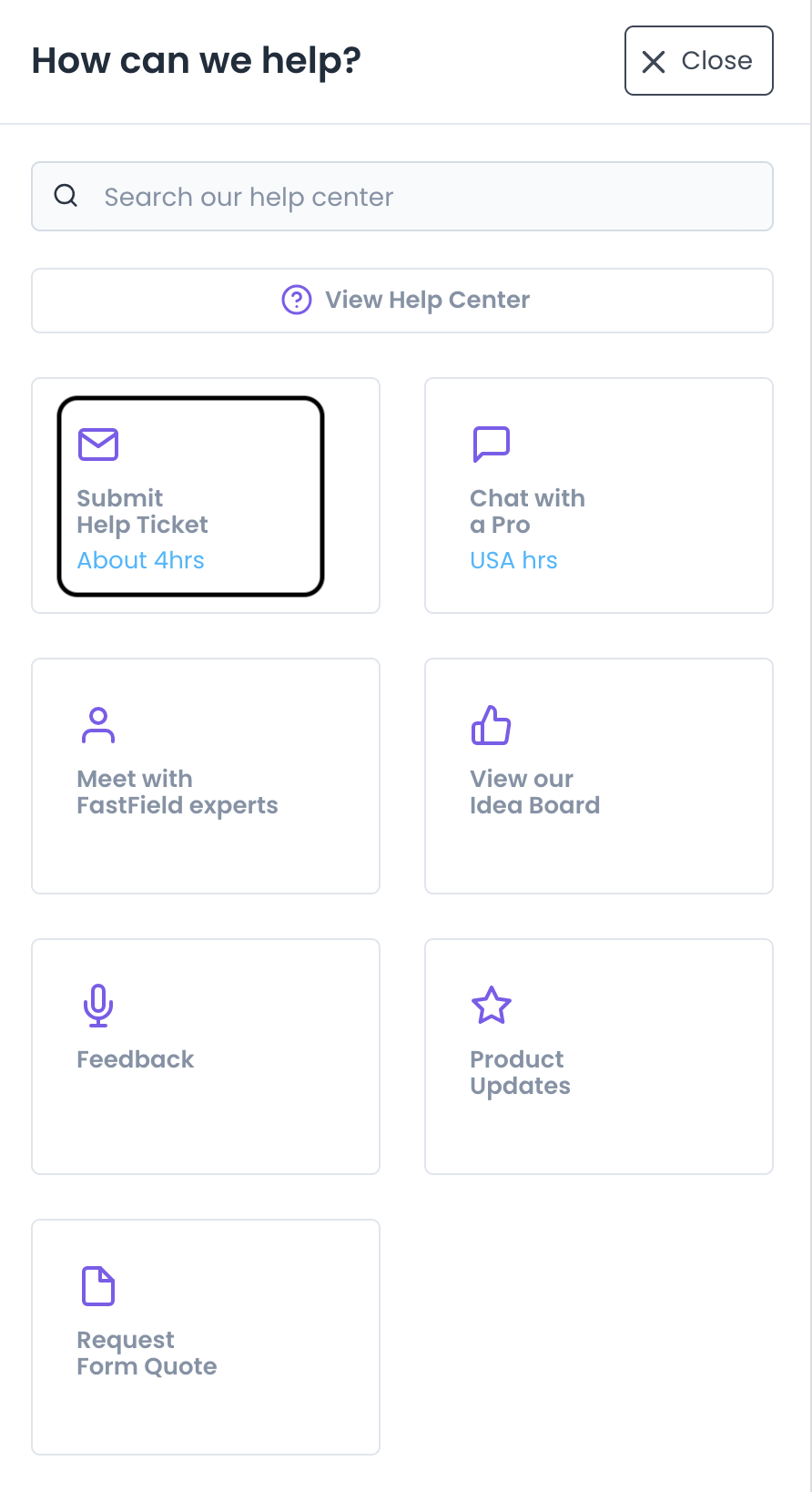 If you need any extra support with FastField, our team is always happy to help! In addition to our Help Center, which contains loads of articles and videos, you can: